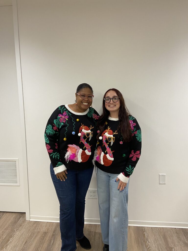 The celebrations began with a holiday sweater and cookie event, where employees enjoyed festive treats while showcasing creative seasonal attire. A memorable moment from the gathering was a tie for ugliest sweater between Amber Bell and Lila Palasz, who both arrived wearing the same sweater, adding a lighthearted moment to the festivities.